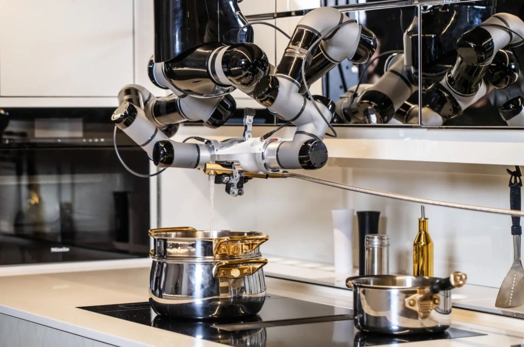 وتسمح الذراعان للروبوت بجلب المكونات من الثلاجة الذكية، وضبط درجة حرارة الفرن، واستخدم المقلاة لملء المقالي والسكب والخلط ووضع الطعام ضمن طبق جاهز للتقديم، مثلما يفعل الطباخ البشري.